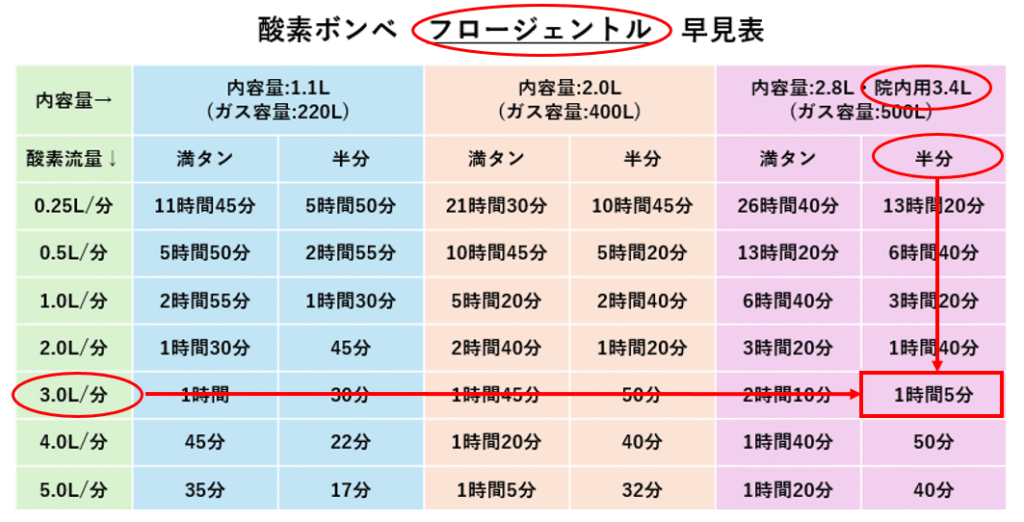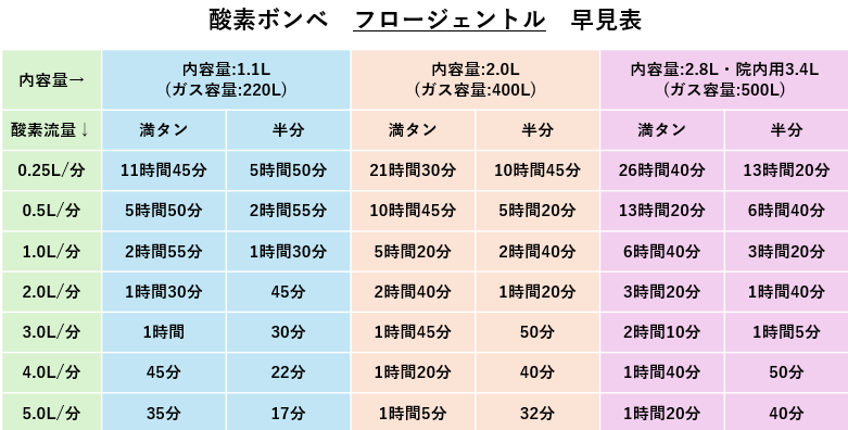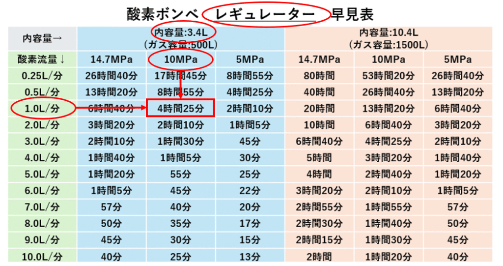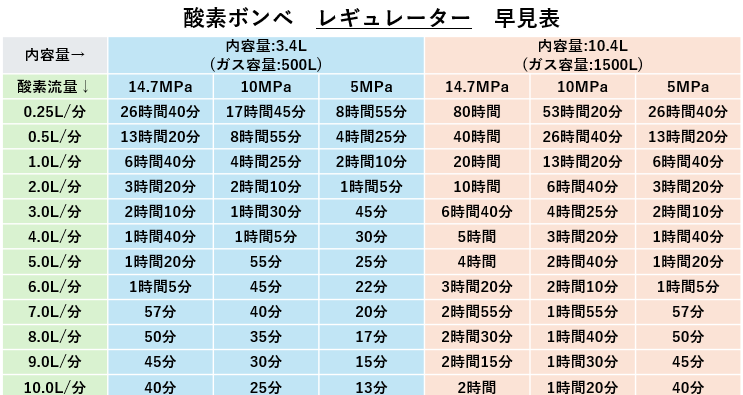 はい!酸素ボンベ早見表どーん!