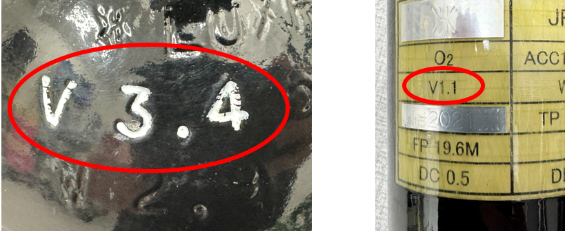 2つ目はボンベの容量です!ボンベをよく見ると、V:〇.〇と記載があります。